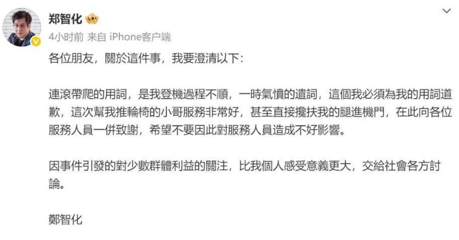 而他们这不算是帮忙,帮郑智化和任何残疾人上飞机,就是他们的工作,领了这份工资就应该干这份活,但是这活干好了吗?真的搞不清楚,该走的人到底是谁?